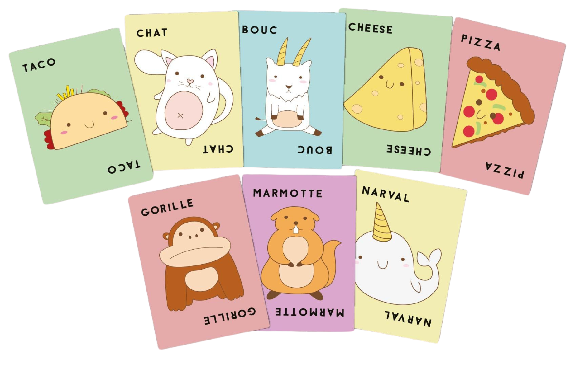 Gardez bien ces 5 mots loufoques en tête. Dès qu’une carte correspondant au mot annoncé est révélée, tapez la pile centrale. Le dernier ramasse tout ! Soyez observateurs et vifs pour vous débarrasser de toutes vos cartes ! La moindre erreur vous coûtera des cartes de pénalité : ni feinte, ni approximation dans ce jeu de défausse complètement frénétique et farfelu.